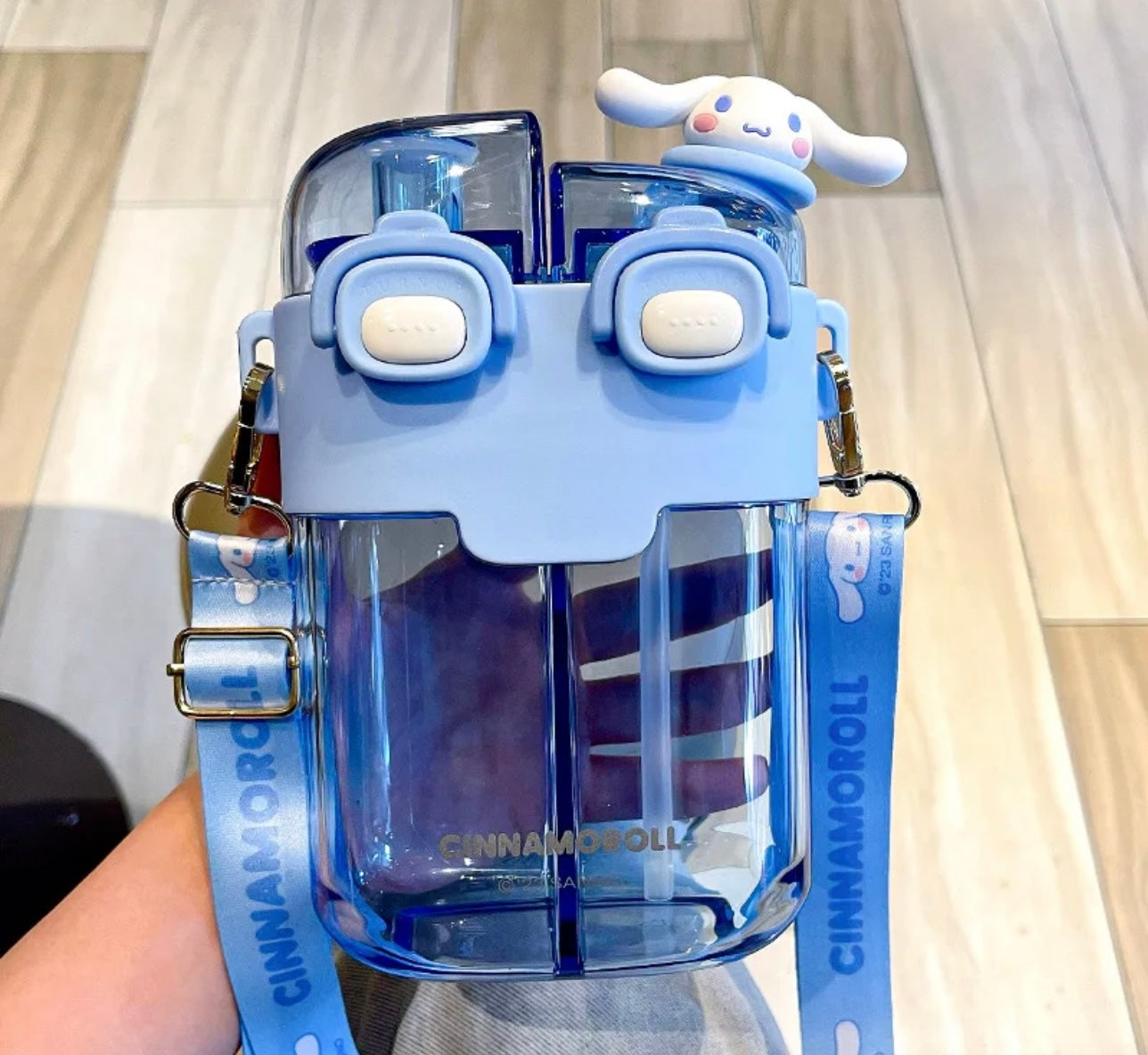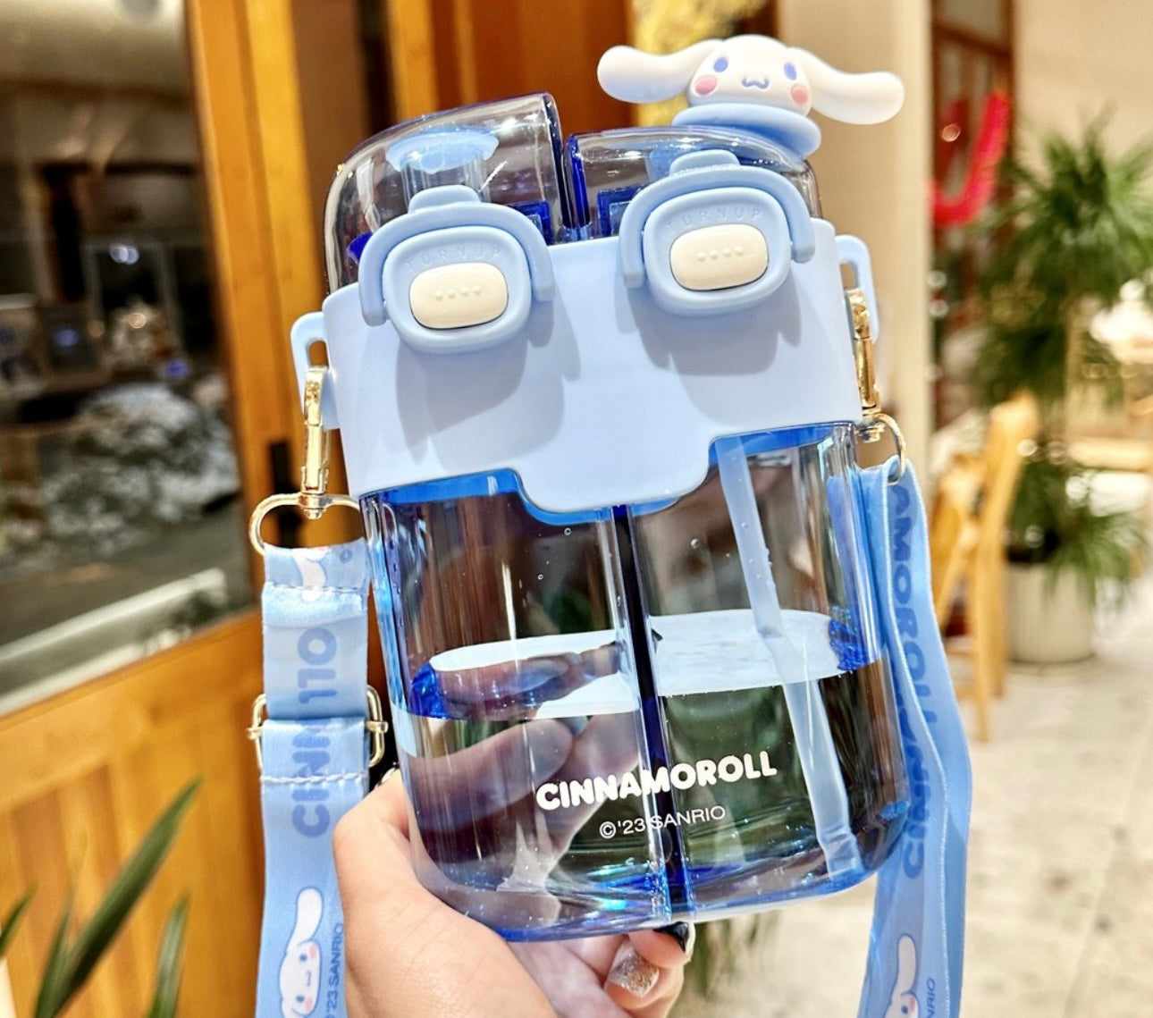 Quench your thirst in the cutest way possible with this Cinnamoroll Dual Straw Water Bottle! Designed with two built-in straws and a secure flip-top lid, this bottle makes it easy to sip on the go—plus, it features an adorable Cinnamoroll figure on top and matching pastel blue strap for hands-free convenience.